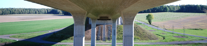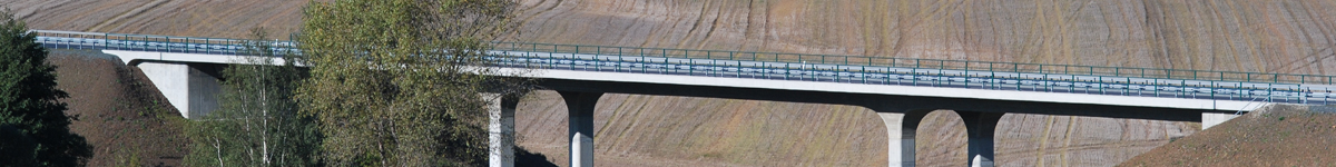 B101 Aue - Berlin, Ausbau nördlich Freiberg | BW1 über das Fischbachtal | Bauherr : Freistaat Sachsen vertreten durch das Straßenbauamt Chemnitz | Konstruktion : semiintegrales Bauwerk aus Ortbeton, vorgespannt | Bauwerksdaten : zweistegiger Plattenbalken | Stützweite 27,25m - 35,0m - 27,25m | Breite zw. Geländern 16,25m | Brückenfläche 1454m² | Zeitraum : 2006 bis 2007 | Unsere Leistungen : Vorplanung, Entwurfsplanung, Ausschreibung, Mitwirkung bei der statisch konstruktiven Prüfung
