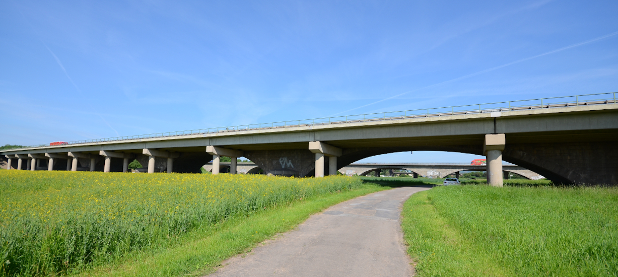 die BAB A2 über die Weser-Flutrinne bei Bad Oeynhausen.